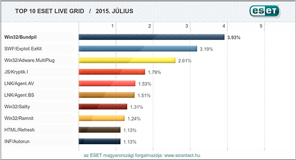 Az ESET szerint az élmezőnyben további változások nem voltak megfigyelhetőek. Ennek megfelelően továbbra is a Bundpil féreg uralja azt. A károkozó cserélhető adathordozókon terjed. Futása során különféle átmeneti állományokat hoz létre a megfertőzött számítógépen, majd egy láthatatlan kártékony munkafolyamatot is elindít. A meghajtókról az .exe, a .vbs, a .pif és a .cmd kiterjesztésű, valamint a Backup állományokat törölheti. Ezenkívül egy URL-címről megkísérel további kártékony komponenseket letölteni, illetve feltelepíteni. Ezáltal további problémák forrásává válhat.