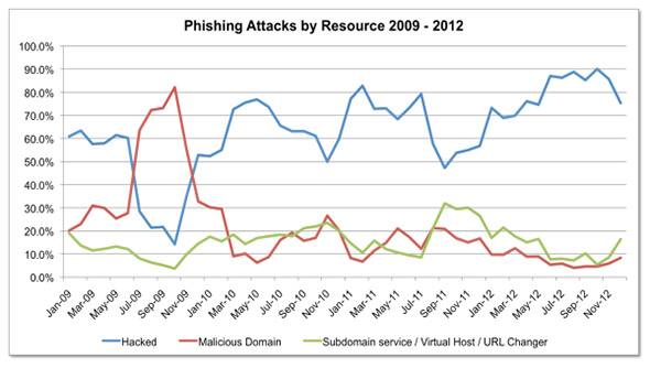 Az adattolvajok, internetes csalók tevékenységével, illetve az adathalász trendekkel kapcsolatban az APWG (Anti-Phishing Working Group) munkacsoport kiadta a legfrissebb jelentését, amelyben elsősorban a tavalyi év második felében tapasztalható biztonsági helyzetet elemezte, és azok alapján igyekezett következtetéseket levonni. Ezek közül a legfontosabb, hogy az ilyen jellegű károkozások száma a vizsgált időszakban tovább emelkedett. A szervezet összesen több mint 120 ezer adathalász támadásról szerzett tudomást 2012 második felében. Összehasonlításképpen meg kell említeni, hogy ez a szám a tavalyi év első félévében még 100 ezer alatt maradt. Érdekes adat, hogy a károkozások során az adathalászok megközelítőleg 90 ezer domain nevet használtak fel. E domaineket azonban korántsem mind a csalók regisztrálták. Az APWG kutatásai azt mutatják, hogy ezek közül körülbelül 5.800 darabot jegyeztethettek be alapvetően ártalmas célokkal.