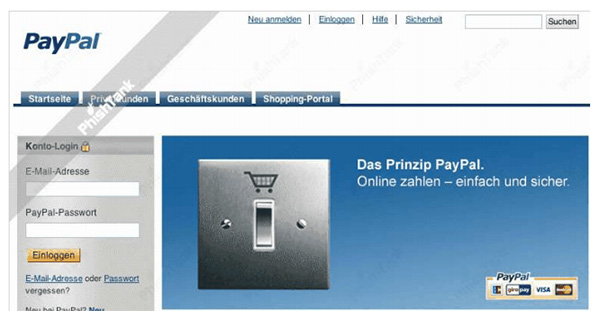 Egy hamis PayPal oldal - Forrás: PhishTank