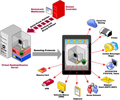 Amennyiben valaki vállalati adatokat szeretne „kimenteni” a hálózatból (függetlenül attól, hogy kártékony szándékkal teszi azt vagy sem), úgy sokféle módon kihasználhatja a jelenleg ismert rendszerek hiányosságait. A DeviceLock esetében a biztonságos csatornákon áramló adatforgalom (FTP/FTPS, HTTP/HTTPS, Cloud, stb.) azonban oly mértékben ellenőrzött, hogy ha tömörített, átnevezett, titkosított vagy JPG formátumra konvertált fájl kiküldését kezdeményezi a felhasználó, úgy a program képes beletekinteni a valódi tartalomba, és értékes adatok esetében blokkolja a kiküldést.